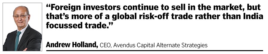 “Foreign investors continue to sell in the market but that’s more of a global risk-off trade rather than India-focussed trade," Holland says.
