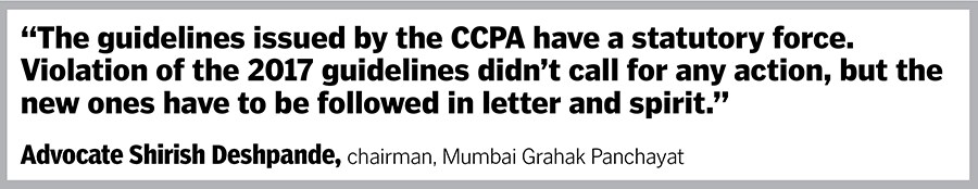 But Shirish Deshpande, advocate and chairman of the Mumbai Grahak Panchayat (MGP), one of the stakeholders in the talks with the government, disagrees and insists that the new guidelines are far sharper than their 2017 counterparts and hold the force of law. “The difference between the new and the old guidelines is that, in the intervening period, the Consumer Protection Act 1986 was replaced with the Consumer Protection Act 2019, which came into effect in July 2020. It created a new statutory body, the CCPA, which has been empowered by the Parliament to take cognisance of the unfair trade practices," says Deshpande. “The guidelines issued by the CCPA have a statutory force under Section 18 (2)(l) of the act mandating it to issue guidelines to protect consumer interest."