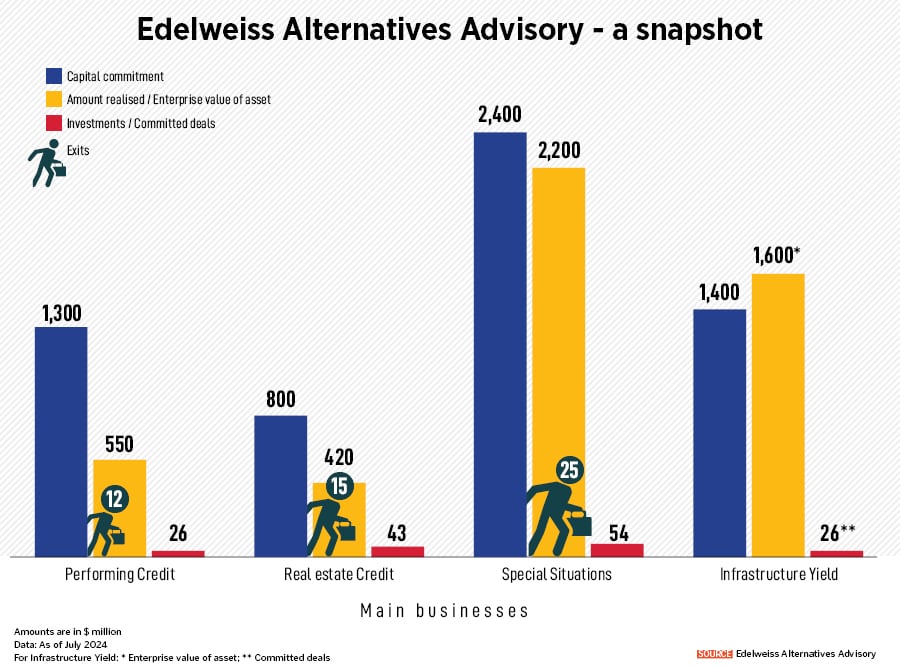 A business which has seen a pick-up in the last decade in a major way is Special Situations, reflected in the fact that Edelweiss Alternatives has made 54 investments, 25 exits and realising $2.2 billion from portfolio companies through three special solution funds in 2011, 2018 and 2022.