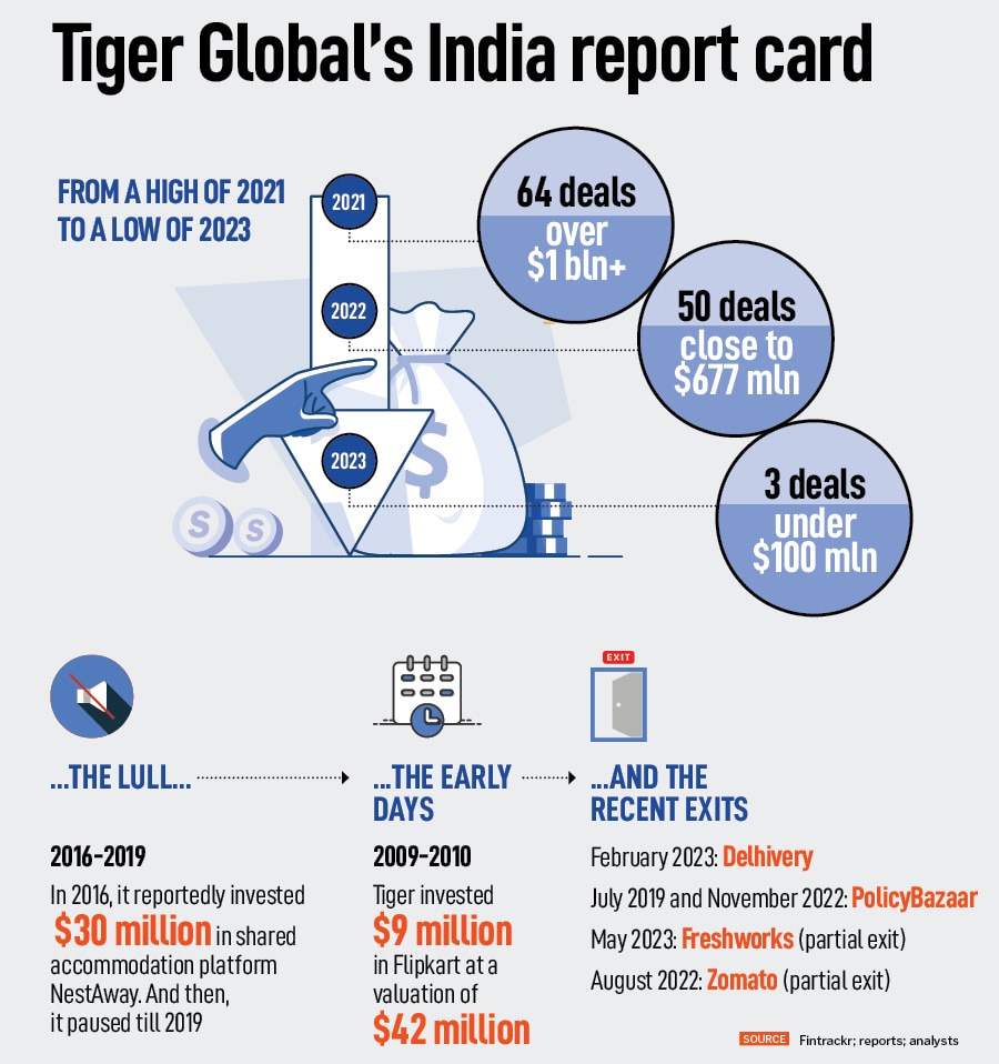 Although Flipkart is the blockbuster exit for Tiger Global in India, it has made handsome returns from Delhivery, PB Fintech and Zomato too. But it will be tough to find another Flipkart in its curren