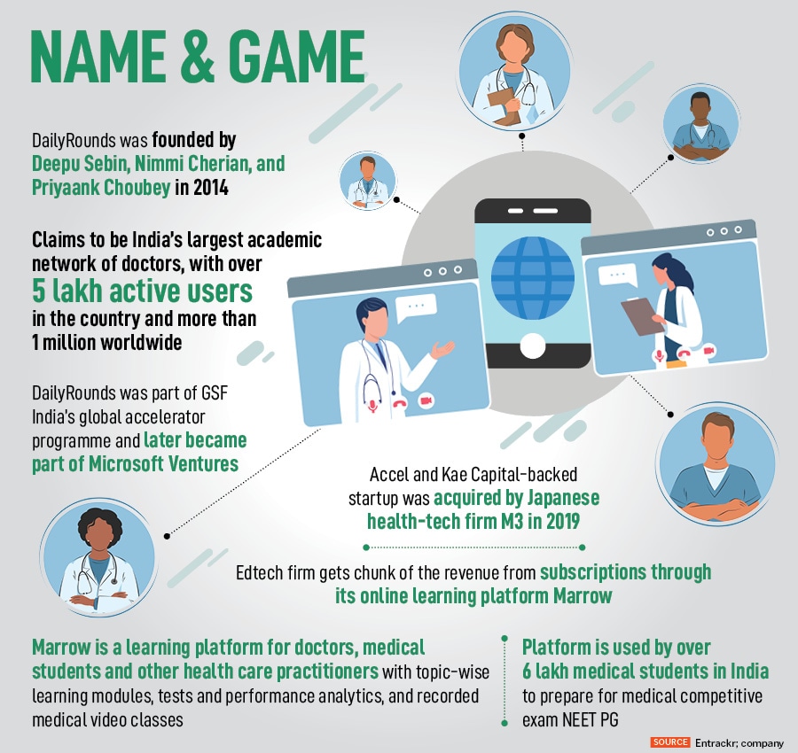 Mumbai, 2016. At times, Mumbai can be overwhelming. Deepu Sebin, who travelled close to two hours and covered 981 km from Bengaluru, was excited about his business meeting with top officials of one of the big pharma companies in Mumbai. The doctor-turned-entrepreneur from Kerala had strong reasons to feel special, and a bit entitled. Co-founded by Sebin, Nimmi Cherian and Priyaank Choubey in December 2014, DailyRounds started as an academic network for doctors who would get clinical cases, quizzes, news and medical content. The idea was to build a thriving community of doctors so that they could learn, discuss and share the knowledge and cases with their peers. “It all started as a passion project," recalls Sebin. “I expected only a few downloads."