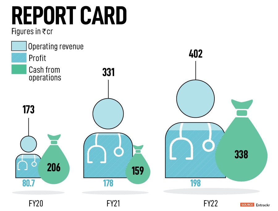 The gambit worked. By March 2019, DailyRounds apps had been downloaded over 5 lakh times, and Marrow was used by more than 3 lakh test takers. The numbers translated into heady revenue from 2020 onwards. From Rs 173 crore in operating revenue in FY20, the numbers jumped to Rs 331 crore in FY21 and Rs 402 crore in FY22. The profit, during the same period, stood at Rs 80.7 crore, Rs 178 crore, and Rs 198 crore, respectively. In terms of users, the numbers jumped to around 6 lakh, which includes more than 2.5 lakh paid users. “We grew during the pandemic and after it as well. The company is still profitable," says Sebin, who exited from the company in March this year, four years after DailyRounds was acquired by Japanese company M3 in 2019.