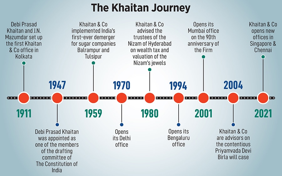 The rest, as they say, is history. By the early 1900s, four Khaitan brothers had graduated in law, and Debi Prasad Khaitan set the foundation of what would go on to become Khaitan & Co in Kolkata in 1911, the year the British shifted the capital from Kolkata to New Delhi. Debi Prasad was soon joined by three of his brothers. “One was an independent barrister, who was a counsel, but otherwise three of them were part of the firm," Khaitan says. “True Indian firms didn"t exist then. So, it was a real opportunity to create that Indian firm."