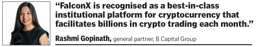 Quite early in his life, Raghu Yarlagadda had ample clarity on what he wanted to do. “I wanted to build products which had immense value, had massive impact and could make a dent in the universe," says co-founder and chief executive officer of FalconX, one of the largest and fastest growing digital asset brokerages based out of the US, with offices across Silicon Valley, Chicago (US), Malta and Bengaluru (India). In June, FalconX more than doubled its valuation to $8 billion when it raised $150 million in Series D of funding led by GIC and B Capital. While the round saw participation from existing investors such as Thoma Bravo, Wellington Management, Adams Street Partners and Tiger Global Management, FalconX already had a long list of marquee backers such as Accel, Altimeter Capital and American Express Ventures.