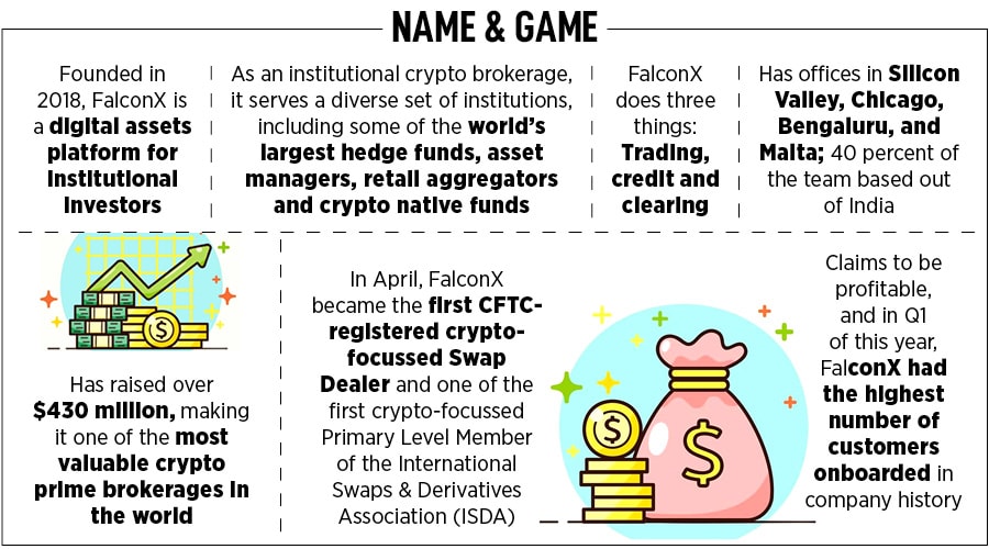 The outcome was FalconX, an institutional crypto brokerage for institutional investors. Yarlagadda explains FalconX by using an Indian example. A Bombay Stock Exchange (BSE), he underlines, is an exchange where people are buying and selling. Zerodha, on other hand, is a brokerage that sits on top of different exchanges. FalconX, he points out, serves a diverse set of institutions, including some of the world"s largest hedge funds, asset managers, retail aggregators and crypto native funds. “We do three things as a brokerage: Trading, credit and clearing," he says. In the US, a lot of institutions traditionally went to exchanges but now are migrating quickly to the brokerage side of things. “As the market matures, the brokerage boom comes in," he says, adding that India is still nascent on the institutional side of crypto business.