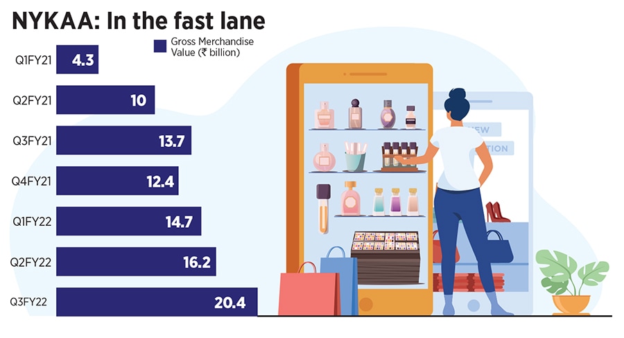 Similarly, Kotak Institutional Equities initiated coverage of Nykaa with an ‘add’ rating, although it has cut its 12-month price target to Rs 2,120 from Rs 2,480. Its analysts say, “Nykaa’s model focusing on content-based customer acquisition, curation and convenience is scalable with long-term growth potential." The brokerage expects Nykaa to deliver a robust CAGR of 41 percent in revenue over FY2021-26E, which is likely to be driven by growth in transacting users.