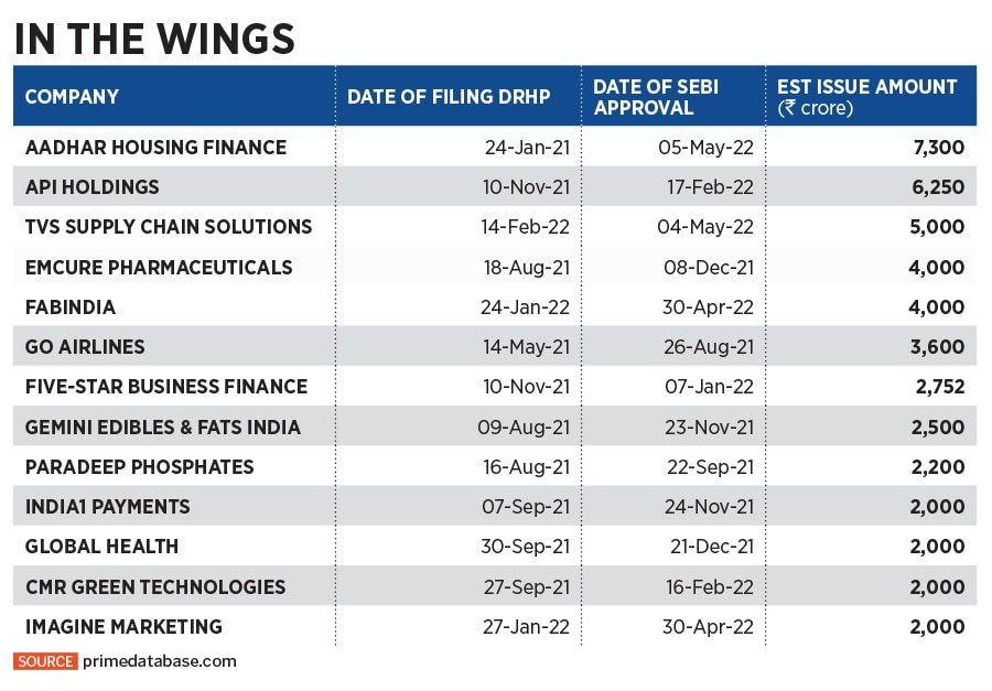 PharmEasy (API Holdings), Imagine Marketing (Boat) and One MobiKwik Systems are some such companies that have deferred their listings despite approvals from the Securities and Exchange Board of India (Sebi). Others like ECom Express have stalled IPO plans due to market volatility. Thirty-eight companies, including Snapdeal, Droom Technology, Oyo, EbixCash and Yatra Online are awaiting Sebi’s approval for IPOs, but are said to be re-evaluating plans because valuations have significantly cooled off and, unlike a few months ago, there isn’t much appetite for new-age tech offerings.