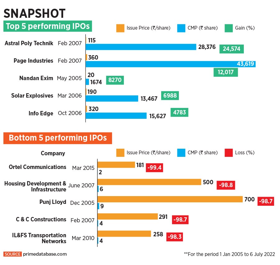 Historical data suggests that the timings of IPOs do not have a bearing on the stock’s long-term performance. Although the listing gains set the tone, they do not determine the returns over the following decades. There are companies that hit the markets during periods of turbulence, but over the following two decades emerged among the best performing IPOs. The opposite is also true.