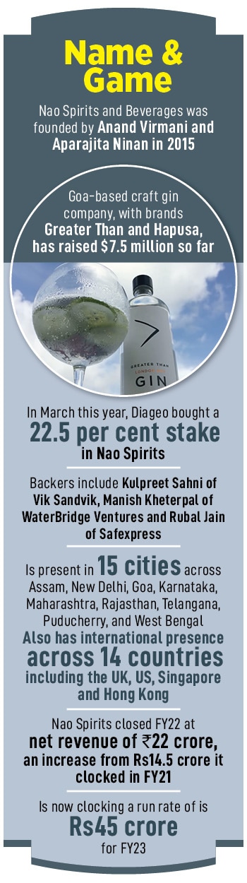 Fast forward to December 2022. The trend does not only seem to be real, but has gathered enough momentum. From Rs14.5 crore in FY21, Nao’s net revenue in FY22 grew to Rs22 crore. The Goa-based brand is now clocking a run rate of Rs45 crore for FY23. Rising numbers match the excitement of marquee buyers. In March, Diageo bought a 22.5 per cent stake in Nao Spirits. Though its first bet in India, the maker of Johnnie Walker whiskey and Smirnoff vodka started beefing up its portfolio when it bought Aviation American Gin, a gin brad co-owned by Hollywood actor Ryan Reynolds, reportedly for $610 million.