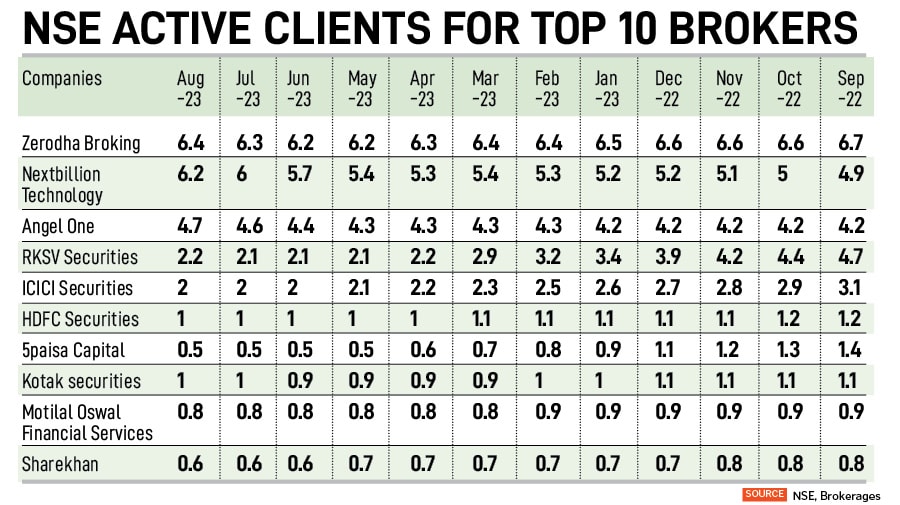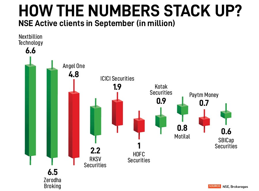 Still, Zerodha’s active clients shrunk 3 percent in September compared to the year ago period, while Groww saw a staggering jump of 1.2 million users since the financial year began. In all, at the end of September, NSE had 33.3 million active users, adding 6 lakh new investors in the month. However, the pace of new active users has slowed down from July even as the benchmark indices Sensex and Nifty had hit record highs multiple times in September.
