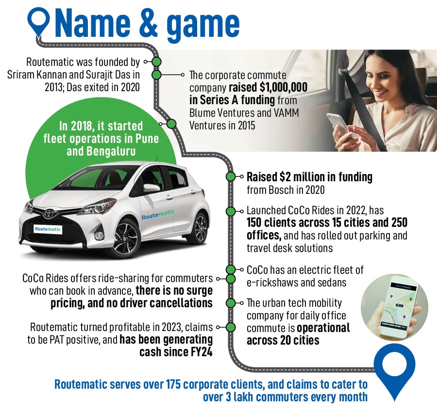 Cut to May 2024. Routematic has defied the odds and rebounded to post a staggering Rs115 crore operating revenue in FY24. “We are PAT positive and have been generating cash," claims Kannan, who has just raised around $6 million in funding in its journey. “It’s a B2B business, and we never needed crazy billions," he says. The urban tech mobility company for daily office commute is now operational across 20 cities, serves over 175 corporate clients, and claims to cater to over 3 lakh commuters every month. “When we started piloting with Infosys, we just did 10 trips daily. Today, we do their 100 percent trips," he says.