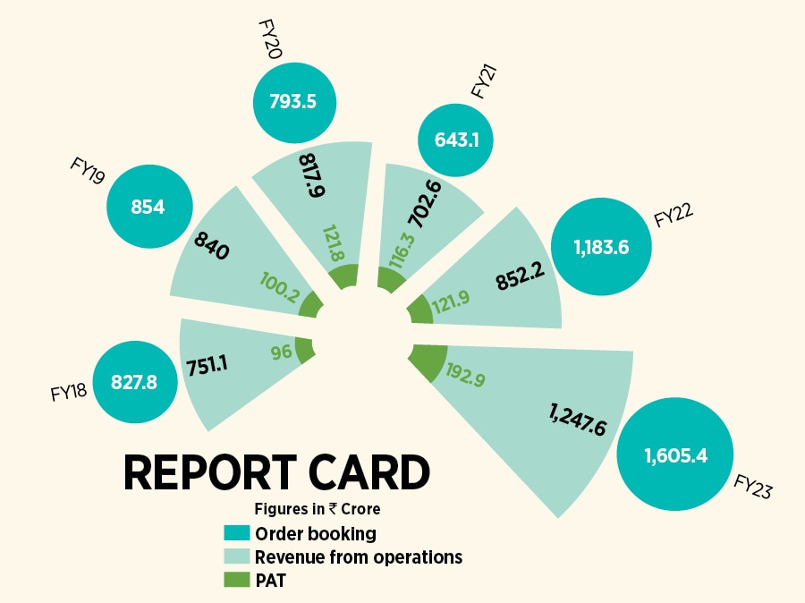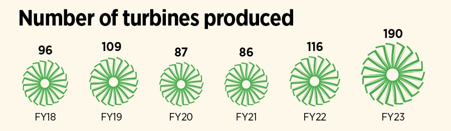 Interestingly, production of turbines too gathered steam: from 116 in FY22 to 190 in FY23. The number looks dramatic if one goes back to FY18 when Triveni just had 96 turbines to show (see box). In terms of global footprint, the company has a total installed base in over 75-plus countries, has sold turbines in over 80-plus nations, and now has taken its unique Intellectual Property Rights (IPRs) to 338.