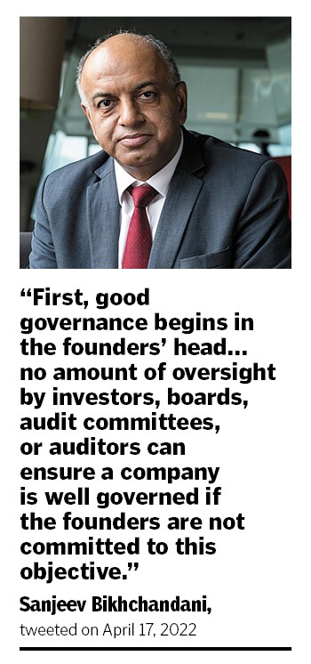 The message was appreciated by everybody in the ecosystem. Sanjeev Bikhchandani commented on Sequoia’s blog. “First, good governance begins in the founders’ head," he tweeted on April 17. “No amount of oversight by investors, boards, audit committees, or auditors can ensure a company is well governed if the founders are not committed to this objective."