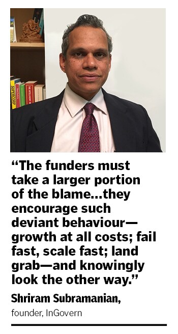 Amid the loud chorus clamouring to go hard against the erring founders, there is a strong voice that points to the other side of the coin, and deliver an unambiguous message: Froth leads to fraud. “The PEs and VCs must take a larger portion of the blame for this mess," says Shriram Subramanian, founder at InGovern, a corporate governance advisory firm. “At the end of the day, they encourage such deviant behaviour—growth at all costs fail fast, scale fast land grab--and knowingly look the other way," he says.