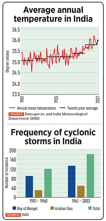 However, climate change is not an Indian phenomenon alone. According to the World Meteorological Organisation (WMO), the period 2015-22 is the warmest on record. Despite the cooling effects of La Nina into its third year, 2022 was the eighth consecutive year in which annual global temperature reached at least 1 degree Celsius above pre-Industrial Revolution levels, fuelled by ever-rising greenhouse gas (GHG) concentrations and accumulated heat.