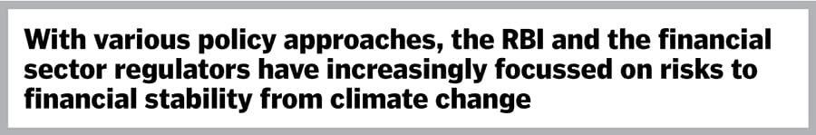 With various policy approaches, like incentivising green financing, introducing green bonds and creating a market for carbon credits, the RBI and the financial sector regulators have increasingly focussed on risks to financial stability from climate change.