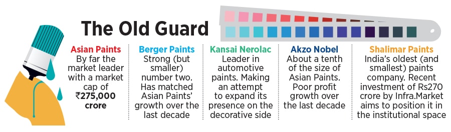 As fresh entrants like Indigo Paints and JSW Paints look to gain market share, the old guard—Asian Paints, Berger Paints, Kansai Nerolac—is working on beefing up its competitive advantage