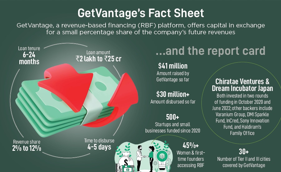 Vasa, though, points out a diversified set of problems. Most digital businesses face two major challenges: Getting quick funding for marketing and inventory, and acquiring and retaining customers. “The old world of fundraising was based on who you know," he says, adding that the new world of fundraising is based on data and business fundamentals. Depending on how sound the financials of a startup are—recurring revenue and a good cash flow—GetVantage offers tailor-made packages to the founders. “The non-dilutive financing model is a more balanced, structured and step-wise approach," contends Vasa, claiming that GetVantage is the only RBF platform in the country with an NBFC licence.