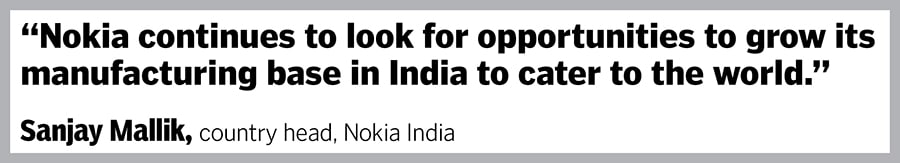 Back in Gurugram, country head of Nokia, Sanjay Mallik, highlights the manufacturing might of Nokia in India. Started in 2008, the Chennai facility is spread over 140,000 sq m, and manufactures telecom products (2G, 3G, 4G, LTE and core networks) for domestic and global markets. Around 50 percent of the finished radio base station products are exported from the factory, which was the first to start production of 5G radio equipment in India. So far, Nokia has made an investment of over ₹4,200 crore in India, including ₹600 crore in manufacturing. The Finnish major also has its largest global delivery units at Chennai and Noida. The centres have over 2,600 employees who provide lifecycle support to networks across 100 countries. “Nokia is the largest telecom exporter from India," claims Mallik. Nokia, he underlines, continues to look for opportunities to grow its manufacturing base to increase production to cater to the world market.