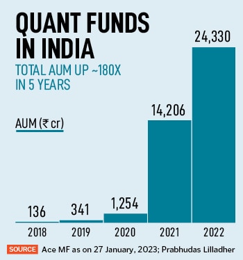 To be sure, the total AUM of mutual funds is to the tune of Rs40 lakh crore and quant funds comprise less than a percent in India. Quant funds are available to HNIs and small retail investors across several asset management segments including PMS, AIF, and factor-based index funds.