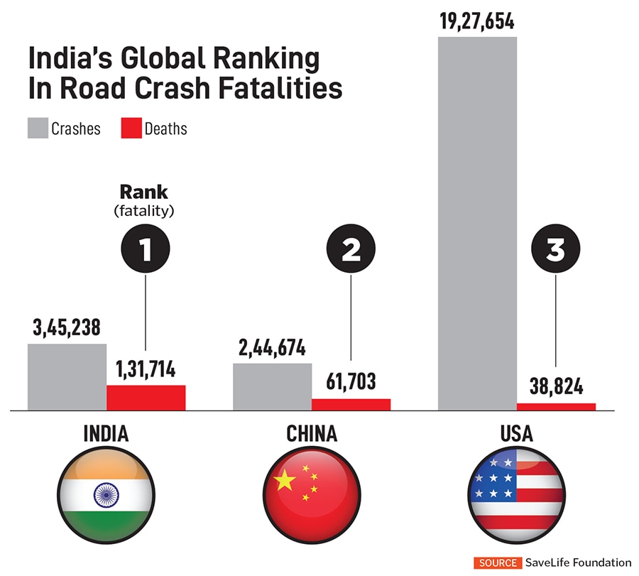 India has the highest number of road crash fatalities in the world (see box), and most of them on national and state highways where drivers were speeding (see box). There is a pressing need to make safety information of vehicles more readily accessible to consumers, while also raising mass awareness about the need to follow driving rules and guidelines in order to avoid crashes, fatalities and injuries.