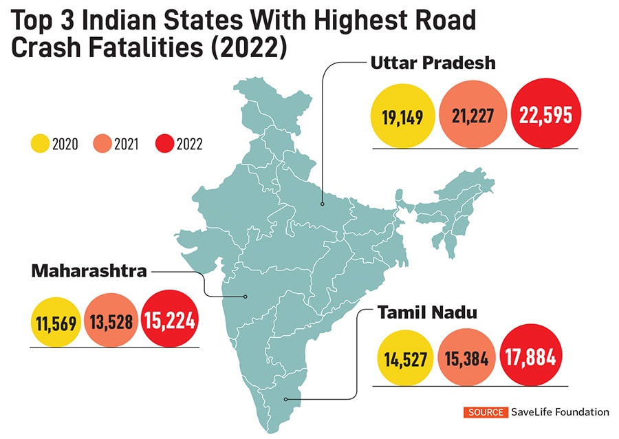 Tewari and Singh both also highlight road design and conditions that contribute to crashes and fatalities. Tewari adds that, in all the road crash incidents that SaveLife Foundation has investigated and analysed, he has found that the construction of roads and road furniture (essential elements that are placed along modern highways and expressways, such as guard rails, signages, lights, etc) have also been factors behind crashes.