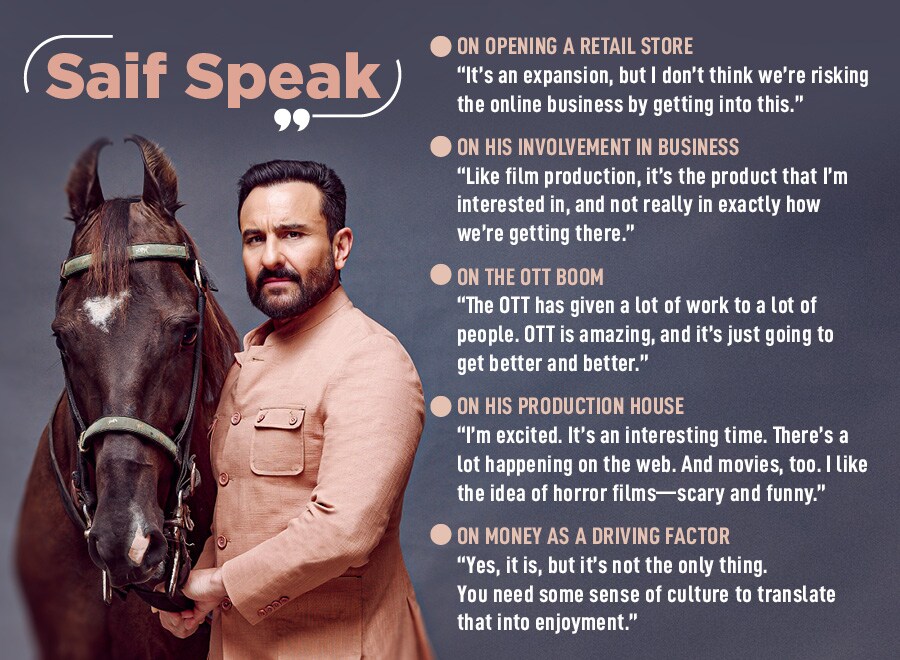 That explains why Khan did not want to bet on having a retail presence till he had made enough money with his venture. The actor launched his ethnic-fashion brand, House of Pataudi, in 2018, but it wasn’t until August this year that he opened its first physical store—a 1,500 sq ft outlet at Phoenix Marketcity in Bengaluru—followed by another in Goa.