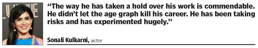 She remembers a costume assistant looked pale and uncomfortable on set one day. Khan stopped shooting and went out of his way to help her. “One should learn chivalry from him," says Kulkarni, who admires the actor for the path he has chosen. “The way he has taken a hold over his work is commendable. He didn’t let the age graph kill his career. Jumping into doing a web show was a big thing. He has been taking risks and has experimented hugely. He has dabbled into mainstream and arthouse cinema. He has opened a production house, and worked with new and established writers and directors."