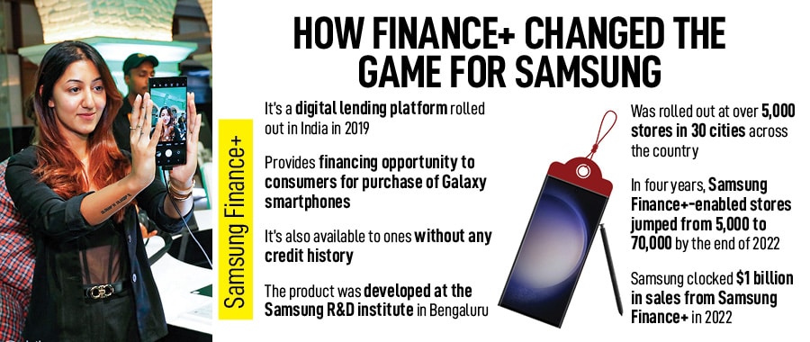 The idea was promising. But there was a glitch. “What if the buyer defaults… they don’t have a credit history?" the NBFCs retorted with their apprehension. “What if they stopped paying?" JB had an answer: “If they don’t pay their EMIs, their phones will get locked," he said, alluding to Knox, Samsung’s defence-grade mobile security platform which is inbuilt in devices. “But what if the defaulters unlock the phone?" was another worry voiced by the NBFCs. JB smiled. “It"s a hardware lock. You can’t unlock it unless you tear off the phone," he assured. Subsequently, Samsung rolled out Finance+, its digital lending platform in 2019. “We started going town by town, and convinced the dealers, who started nudging the buyers to upgrade," he says.