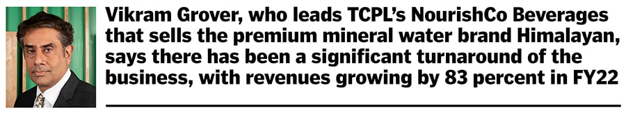 Similarly, premium mineral water brand Himalayan, which TCPL houses since acquiring PepsiCo’s stake in NourishCo Beverages—a 50:50 joint venture between the beverage giant and the Tatas that sold Himalayan and Tata Gluco Plus—was loss-making for years. But in Q2FY22 it broke even and in Q3FY22 it turned EBIT positive.