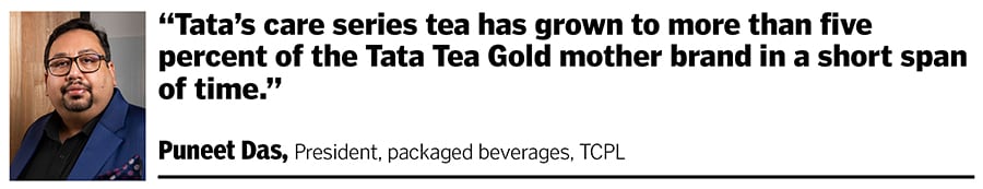 TCPL also launched Tata Tea Gold Care, an innovation it dubs the ‘care series’ that is infused with indigenous herbs like tulsi and brahmi. Positioned as a tea that helps boost one’s immunity, it has been steadily gaining market share pan-India and grown to more than five percent of the Tata Tea Gold mother brand in a short span of time, says Das.