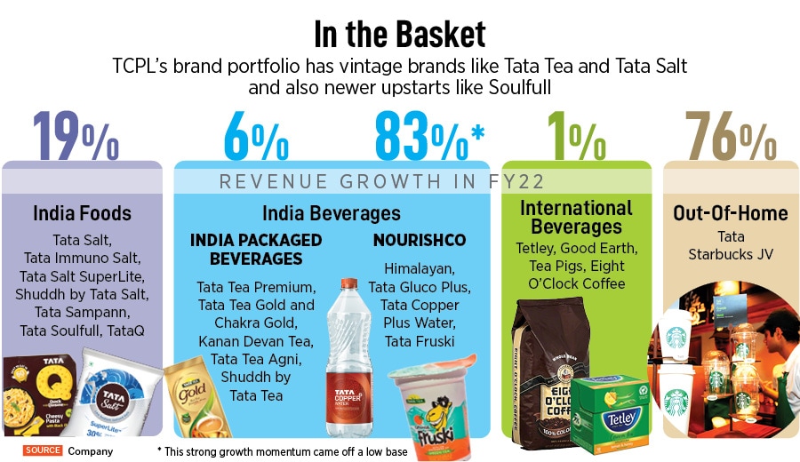 Borne out of a merger between Tata Chemicals’ consumer-focussed arm that sold brands such as Tata Salt and pulses-to-poha-seller Tata Sampann, with Tata Global Beverages, the maker of Tata Tea, TCPL was minted in February 2020. The idea was to integrate the food and beverage interests of the Tata Group into a single company to help drive efficiencies and realise synergies.