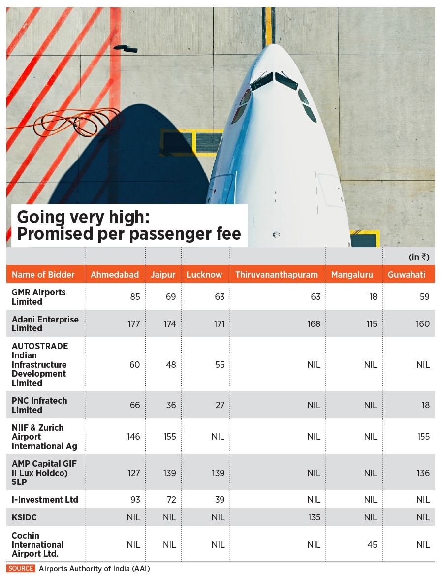 The deliberate delay in taking over the airports has raised questions within the industry about the group’s inability to meet the high bid amounts. For instance, at Rs 115 per passenger for Mangaluru and Rs 171 for Lucknow, Adani Group’s bids were over 500 percent more than the lowest bids received from the GMR Group and PNC Infratech. Similarly, Adani Group"s bid of Rs 177 for the Ahmedabad airport was nearly 200 percent more than the lowest bid of Rs 60 from Autostrade Indian Infrastructure Development Pvt Ltd.