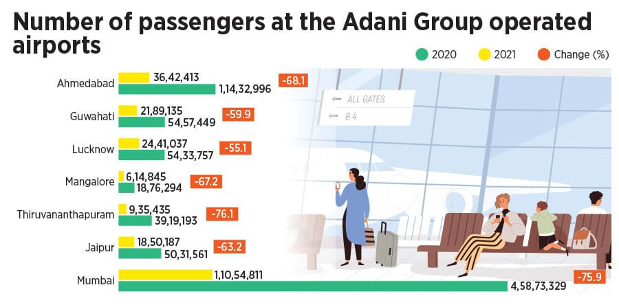 So far, the Adani Group has taken control of three—Mangaluru, Ahmedabad, and Lucknow—of the six airports for which it had submitted winning bids. While AAI had signed three concession agreements in January 2021 with the Adani Group for the operations, management, and development of the Guwahati, Jaipur, and Thiruvananthapuram airports, the group has sought a three-month extension on taking over them, due to current economic conditions.