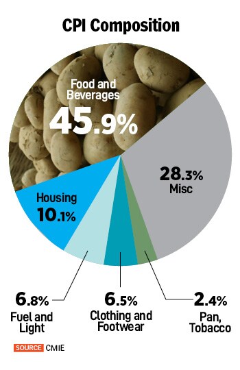 On the face of it, inflation seems to be aligned with the MPC"s target of 4 percent [with a +/- margin of 2 percent]. But many economists are wary of underlying dynamics masking the "real" inflationary pressure, given the overall composition of the consumer price index (CPI) basket [Exhibit 1]. The cost of 131 out of 293 (or 45 percent) low-weightage items in the CPI basket rose by over 6 percent. So, the headline inflation at 4.5 percent in October could have been higher if not for the recent moderation in food prices (which was largely due to statistical reasons), says Madan Sabnavis, chief economist, Care Ratings.