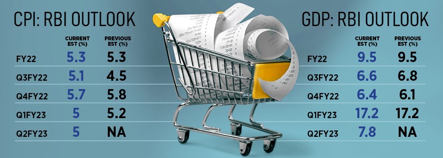 The RBI has retained its GDP and inflation projections at 9.5 percent and 5.3 percent respectively for FY22 [Exhibit 5]. But Aurodeep Nandi, economist and VP at Nomura, believes the central bank"s macro view of the economy "somewhat downplays the inherent upside risks on inflation, especially with firms across various sectors starting to raise their prices amid potential demand side pressures that would start to build up as the output gap closes".