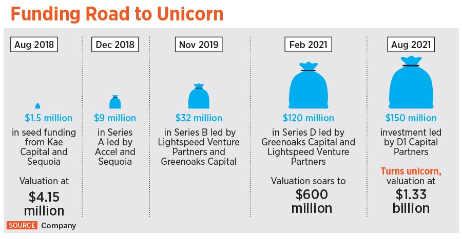 Cut to August 2021. Zetwerk bagged $150 million [approximately Rs1,100 crore*] in a Series E investment round led by D1 Capital Partners, which valued the startup at $1.33 billion [around Rs9,748.9 crore*]. India’s 26th unicorn this year just took three years to enter into the coveted stable that is now getting cluttered. Zetwerk’s staggering jump in valuation is backed by an equally astounding rise in its revenue: From Rs21 crore in FY19 to Rs 949 crore in FY21. The icing on the cake is the fact that Zetwerk is a profitable unicorn.