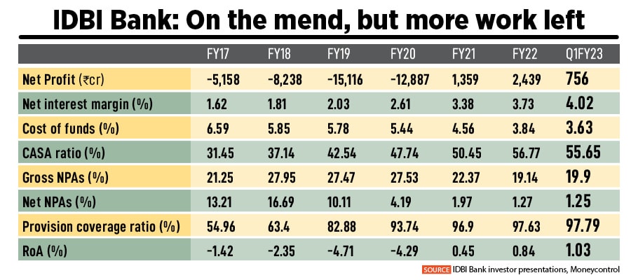 “The current and savings account [CASA] book may not have galloped, but one has to remember that this bank was in the ICU," says a source close to the bank, on condition of anonymity. IDBI Bank was freed from the RBI’s Prompt Corrective Action (PCA) framework in March 2021, after nearly four years. This had impinged lending, business expansion and accessing costly deposits, which hurt profitability.