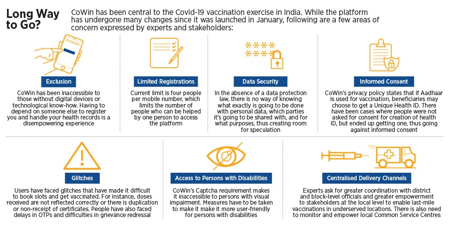 "‹Singh agrees that officials have been consistently improving CoWin, based on feedback, which is why the platform today is not the same as the one that was launched in January. “But when you make a platform of this nature, and more importantly, when you make it the only way to access vaccines, you must get it right the first time. Because if there are issues that lead to even 1 percent of the population getting excluded, that"s more than a crore people," he says. “With the technology solution as it is now, you stand to exclude not just 1 percent, but 20-30 percent of the population, which is a mind-boggling number."
