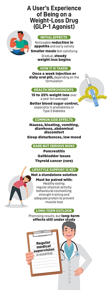 Some clinics are reportedly promoting GLP-1 agonists for weight loss outside their approved medical use, often without proper patient evaluation. “Certain fitness centres have also been implicated in pushing these drugs as effortless, quick-fix solutions, bypassing the need for individualised health assessments or professional oversight," adds Gupta Shekhawat.