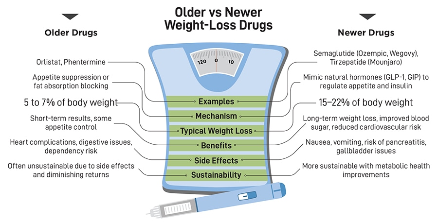 Older drugs like orlistat worked by reducing fat absorption or suppressing appetite, but they often fell short in the long term, plagued by side effects like heart problems and digestive issues.