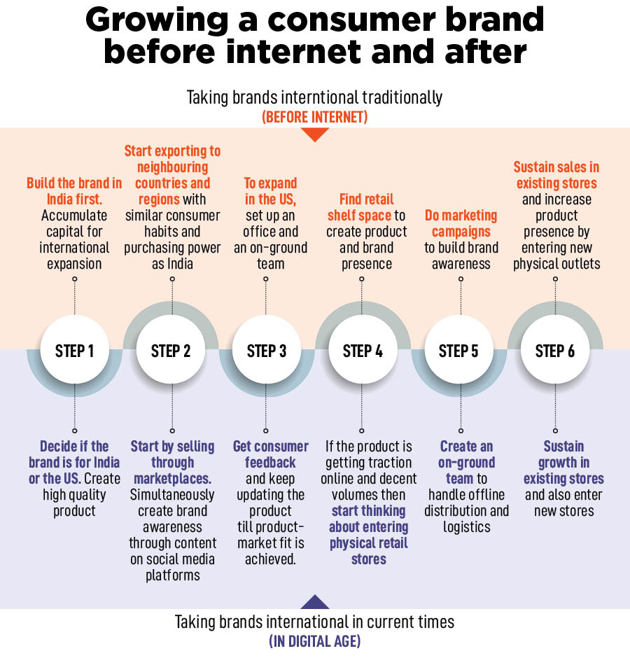 Building a brand in the US is also not completely different from doing it in India. Factors, including digital marketing, customer acquisition cost and timely retail expansion, are similar for both countries. Major differences come in creating a differentiated product with top-notch quality, cost effective management of supply chain, understanding the consumer nuances, and figuring out retail distribution and sustaining in those stores.