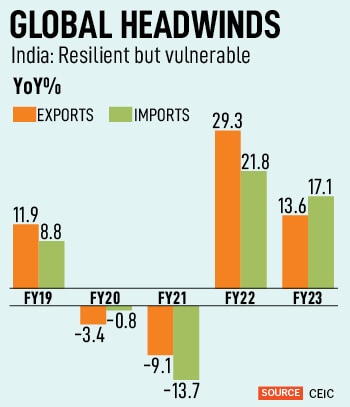 “We expect economy to moderate by 6 to 6.5 percent in FY24 against the headwinds of global economic slowdown, weaker exports, lower services sector due to waning pent-up demand and dwindling agriculture growth, assuming the monsoon is not normal or spatially distributed and aggravating heat wave conditions (El Nino). These remain key risks to our growth projections," it states.