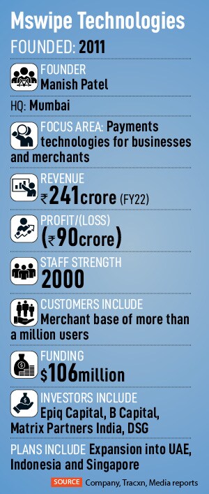 Mswipe Technologies was started more than 11 years ago, and over the course of time, “we"ve seen everything, survived everything, and tried to master whatever we could," CEO Ketan Patel told Forbes India in July 2022. At the time, the company, well known for its point-of-sale terminals, had around half a million merchants using them, Patel said. From 2017-18 Mswipe has focussed on QR code-based payments, with a million merchants using its QR codes, he said. More recently, it brought its own soundbox, the Mswipe Boombox, to the market with which merchants can get sound and display notifications for payments. Mswipe also has an NBFC permit and has been expanding its lending business over the last year or so.