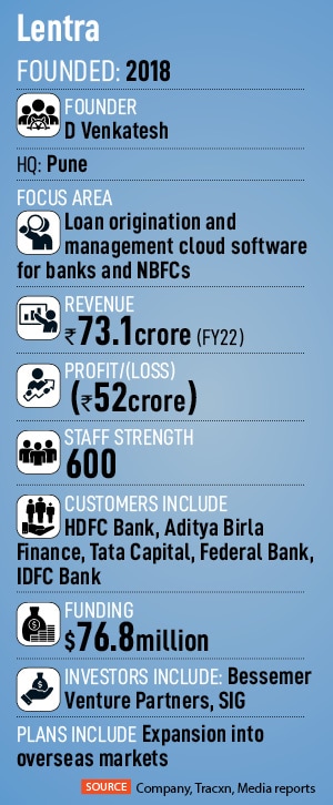 “We have far exceeded the banks’ expectations on all dimensions," Venkatesh says. “People forget information security and the availability angles when they do these kinds of pieces, but we"ve excelled on those fronts." From the time of inception, Lentra has helped banks give out billions of dollars in loans. On a typical day, its platform helps process over 150,000 applications, Venkatesh says. With the team of employees expected to reach 800, Lentra has visibility of customers and orders to $100 million in revenue in FY24, he says. Beyond that, the ambition is to get to $250 million revenues in 2026.