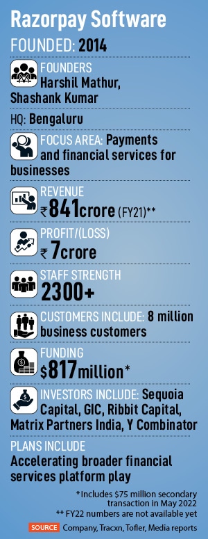 The company is expected to go deeper into the emerging hot area of ‘banking as a service’, which accounting giant Deloitte defines as provisioning of banking products and services through third-party distributors. This opens up the possibility that a large number of new niche finance startups can partner large, established banks and financial services companies, and help each other tap a significantly larger market than they could individually. Razorpay could emerge as a facilitator of this growth, and benefit from it. In December 2021, the company was privately valued at $7.5 billion, making it one of India’s most valued startups.