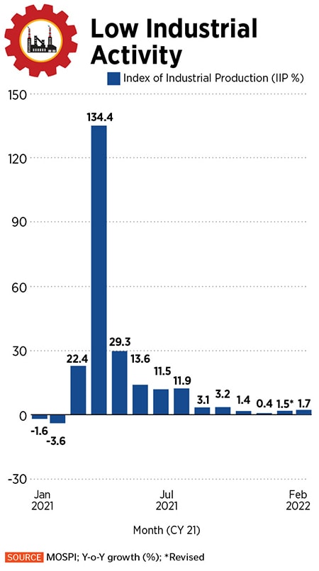 Two, Industrial production in February was “disappointing" as it marginally improved to 1.7 percent from 1.5 percent in January, much below analysts’ and economists’ consensus forecast of 2.9-3.3 percent. Manufacturing activity has been dismal for consecutive quarters.
