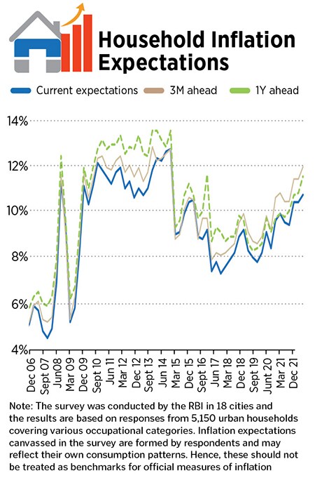 A note by Kotak Mahindra Bank estimates average inflation of 6.2 percent in FY23. “The pass-through of elevated commodity prices is likely to continue both in agriculture (possible higher MSP) and non-agriculture products, and the persistence of supply-chain disruptions will likely continue posing significant upside risks to inflation," it says.