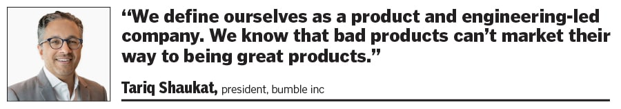 “We define ourselves as a product and engineering-led company. We know that bad products can"t market their way to being great products," says Shaukat. The product team at Bumble has been working on ways to further integrate AI and ML. For years now, content moderation, personalisation and recommendations have all been powered by this technology.