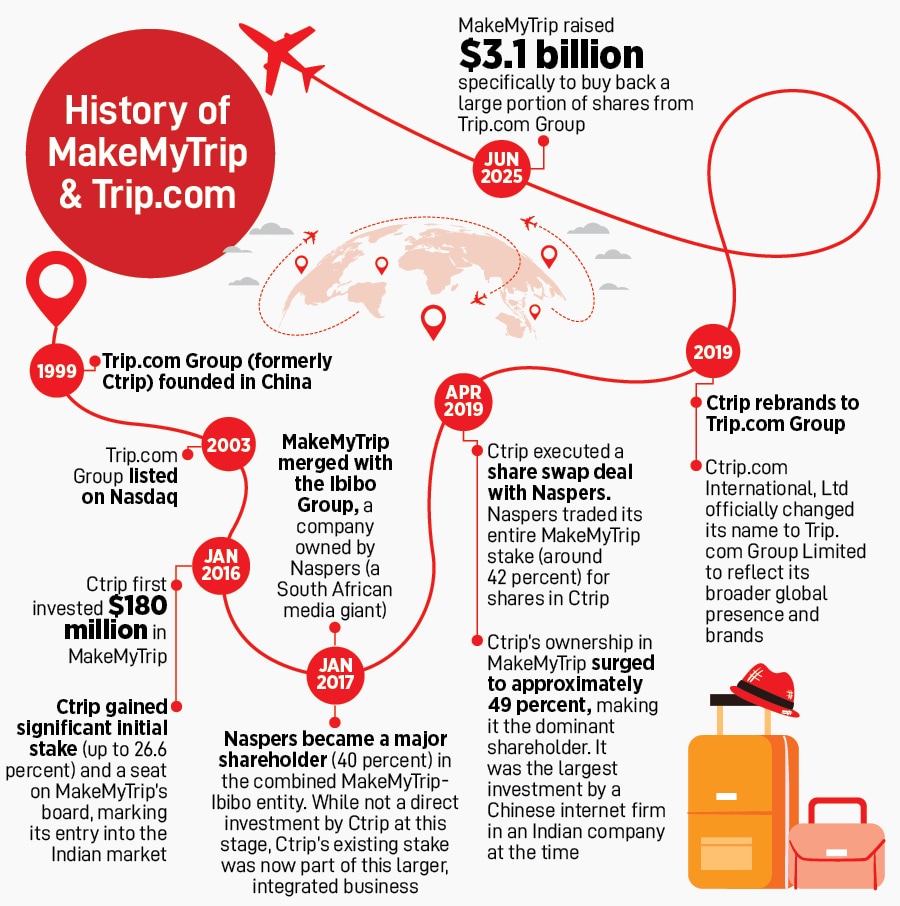 Interestingly, the capital raised is not for business expansion, acquisitions or operational investments. It will be used solely to repurchase shares from the Trip.com Group (formerly Ctrip), a China-based online travel agency (listed in the US on the Nasdaq), that was a major shareholder. “The company plans to use all of the net proceeds from the Notes Offering and the Primary Equity Offering to repurchase a portion of its Class B shares from Trip.com Group Limited," said the press release by MakeMyTrip.